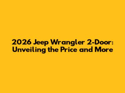 Anticipating the 2026 Jeep Wrangler 2-Door Price: What to Watch For