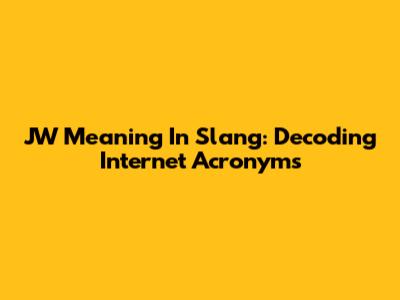 JW Meaning In Slang: Decoding Internet Acronyms