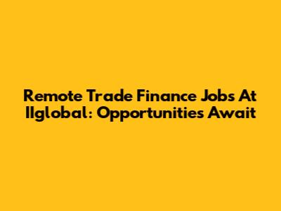 Remote Trade Finance Jobs At IIglobal: Opportunities Await