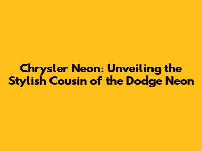 The Shared Heritage: Dodge Neon and Chrysler Neon