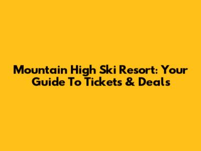 Mountain High Ski Resort: Your Guide To Tickets & Deals