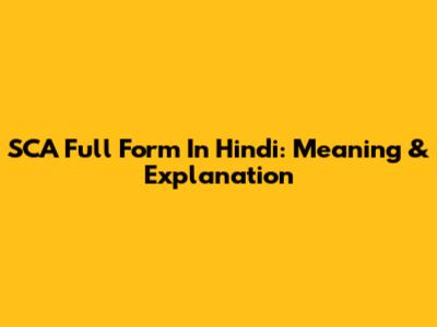 SCA Full Form In Hindi: Meaning & Explanation