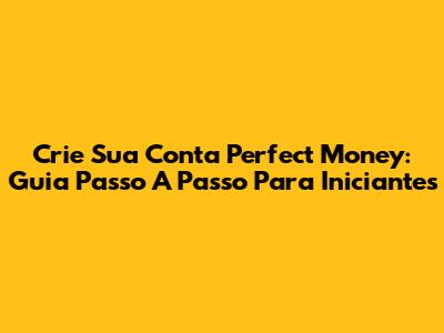 Crie Sua Conta Perfect Money: Guia Passo A Passo Para Iniciantes