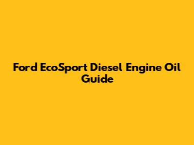 Ford EcoSport Diesel Engine Oil Guide