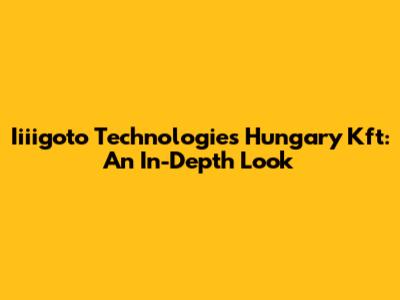 Iiiigoto Technologies Hungary Kft: An In-Depth Look