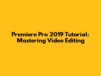 Premiere Pro 2019 Tutorial: Mastering Video Editing