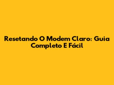 Resetando O Modem Claro: Guia Completo E Fácil