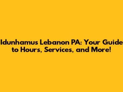 Unveiling Idunhamu's Lebanon PA Hours of Operation