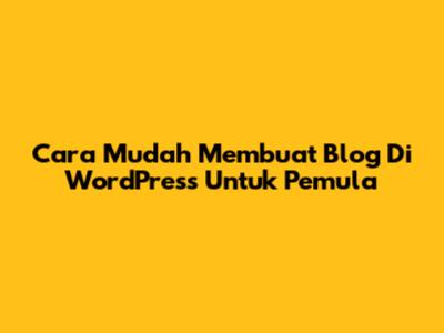 Cara Mudah Membuat Blog Di WordPress Untuk Pemula