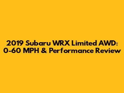 2019 Subaru WRX Limited AWD: 0-60 MPH & Performance Review