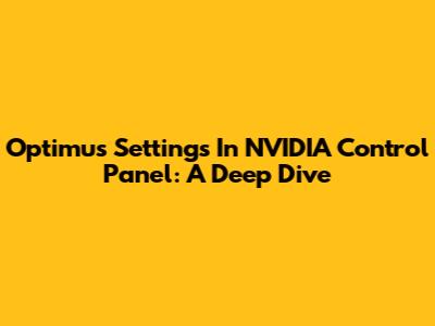 Optimus Settings In NVIDIA Control Panel: A Deep Dive