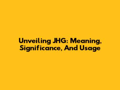 Unveiling JHG: Meaning, Significance, And Usage