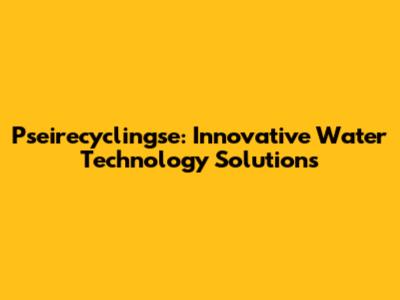 Pseirecyclingse: Innovative Water Technology Solutions