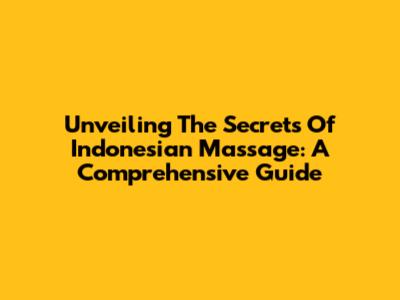 Unveiling The Secrets Of Indonesian Massage: A Comprehensive Guide