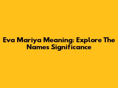 Eva Mariya Meaning: Explore The Name's Significance