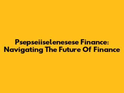 Psepseiiselenesese Finance: Navigating The Future Of Finance