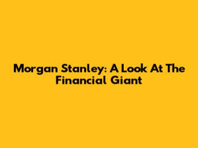 Morgan Stanley: A Look At The Financial Giant