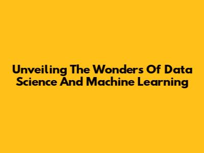 Unveiling The Wonders Of Data Science And Machine Learning
