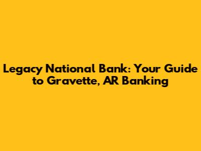 Legacy National Bank in Gravette, AR, is more than just a financial institution. It is a cornerstone of the community. From personal and business banking services to community involvement, Legacy National Bank offers a range of benefits. It's important to consider your individual financial needs. If you're looking for a bank that provides personalized service, supports the local economy, and offers a variety of services, Legacy National Bank is worth considering. We hope this guide has given you a clear picture of what Legacy National Bank has to offer. Good luck with your financial journey!