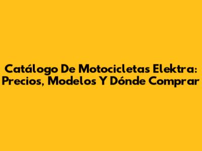Catálogo De Motocicletas Elektra: Precios, Modelos Y Dónde Comprar