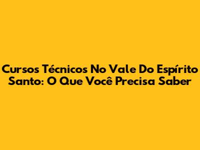 Cursos Técnicos No Vale Do Espírito Santo: O Que Você Precisa Saber
