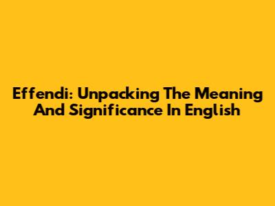 Effendi: Unpacking The Meaning And Significance In English