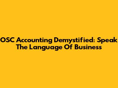 OSC Accounting Demystified: Speak The Language Of Business