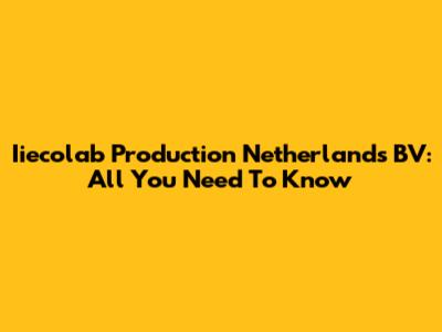 Iiecolab Production Netherlands BV: All You Need To Know