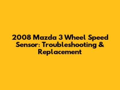 2008 Mazda 3 Wheel Speed Sensor: Troubleshooting & Replacement