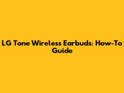 LG Tone Wireless Earbuds: How-To Guide
