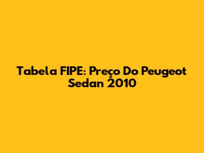 Tabela FIPE: Preço Do Peugeot Sedan 2010
