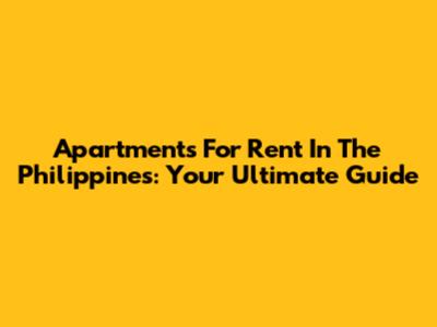 Apartments For Rent In The Philippines: Your Ultimate Guide