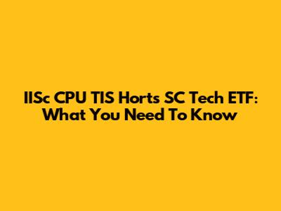 IISc CPU TIS Horts SC Tech ETF: What You Need To Know