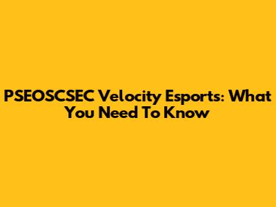 PSEOSCSEC Velocity Esports: What You Need To Know