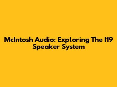 McIntosh Audio: Exploring The I19 Speaker System
