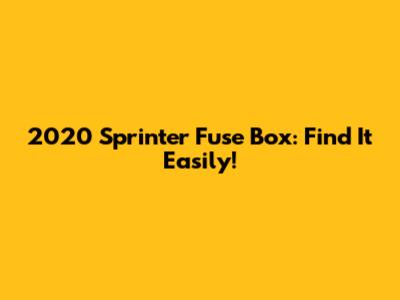 2020 Sprinter Fuse Box: Find It Easily!