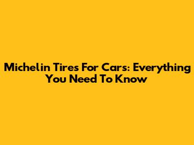 Michelin Tires For Cars: Everything You Need To Know