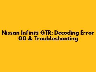 Nissan Infiniti GTR: Decoding Error 00 & Troubleshooting