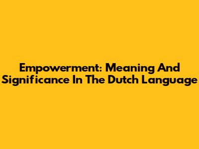 Empowerment: Meaning And Significance In The Dutch Language