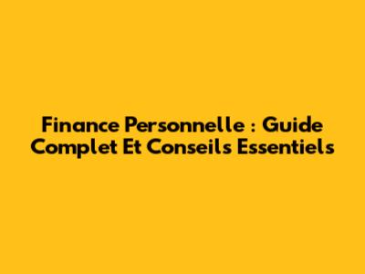 Finance Personnelle : Guide Complet Et Conseils Essentiels