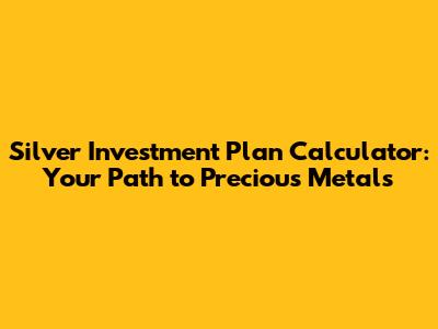 Silver Investment Plan Calculator: Your Path to Precious Metals