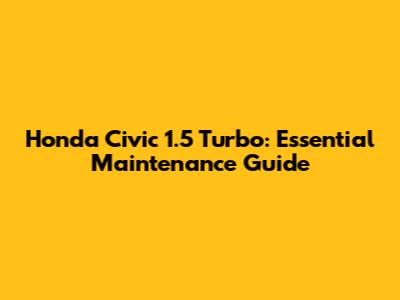 Honda Civic 1.5 Turbo: Essential Maintenance Guide