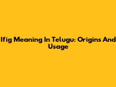 Ifig Meaning In Telugu: Origins And Usage