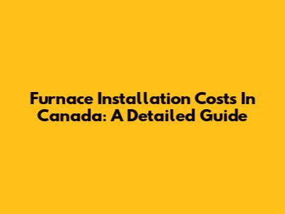 Furnace Installation Costs In Canada: A Detailed Guide