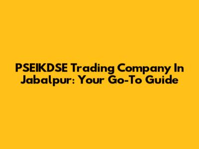 PSEIKDSE Trading Company In Jabalpur: Your Go-To Guide