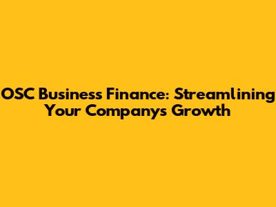 OSC Business Finance: Streamlining Your Company's Growth